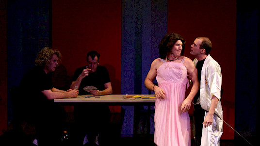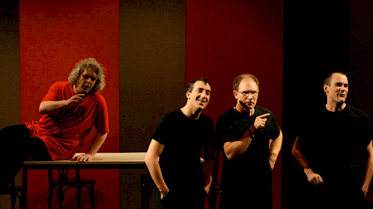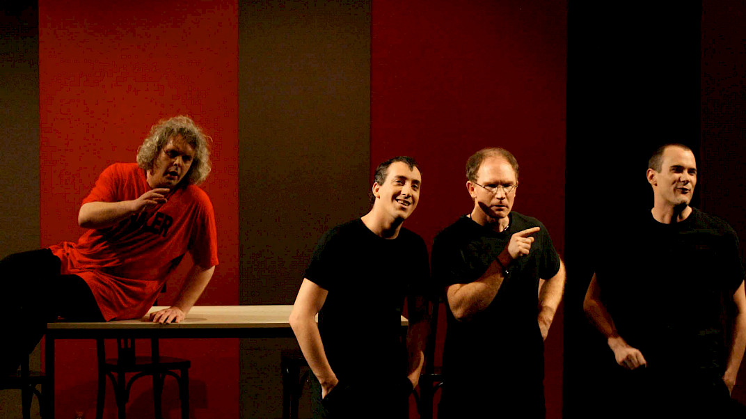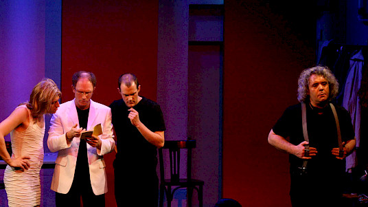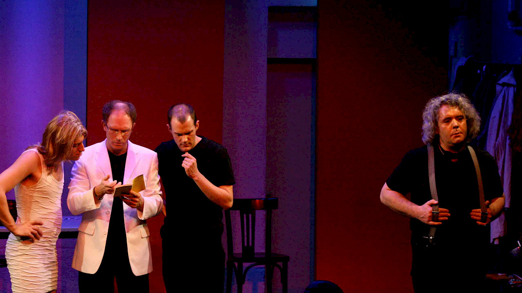 Um mit Worten aus dem Stück selbst zu sprechen: »Tauchen Sie mit uns ein in die ebenso wahnsinnige wie atemberaubende Welt eines Mannes, dem das Theater alles war.« Sehen Sie »ein gutes Dutzend genialer Stücke zusammengestellt in einem kongenialen Meisterwerk bundesdeutschen Unterhaltungstheaters«, dargeboten von den »vier besten Schauspielern deutscher Zunge, der Quintessenz Schillerscher Geistesgröße hoch vier.« – Und: Lachen Sie sich krumm!