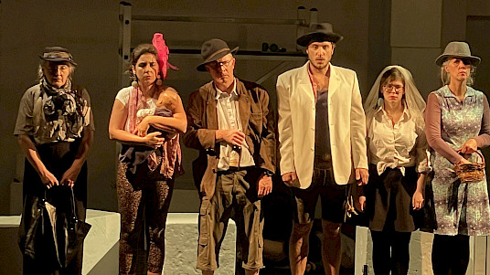 Die Handlung? Eine – eher ungewöhnliche – Familie flieht aus der Stadt, weil dort katastrophenartige Endzeit-Zustände herrschen. Das jedenfalls scheint sich ihren Gesprächen entnehmen zu lassen, irritierende Momente einer dunklen Zukunftsvision blitzen auf. In Seiersberg, einem nahegelegenen Dorf, lassen sie sich nieder, misstrauisch aber durchaus auch interessiert beäugt und beobachtet von den Einheimischen – und zunächst selbst ganz auf Abgrenzung bedacht. Die Integration der Fremdlinge funktioniert dann aber doch recht rasch und erstaunlich gut, denn beide Seiten wissen Vorteil aus den Interessen der jeweils anderen zu schlagen. Die eine braucht eine Frau für ihren Sohn, der andere ein Kind für die zweite Frau, die leider nicht sein Lebensmensch ist? Das lässt sich regeln. Mit Bauernschläue wird alles arrangiert und zu schlechter Letzt geheiratet, das Volksstück lässt schön grüßen Die menschlichen Kollateralschäden fallen da nicht besonders ins Gewicht. Pardon wird nicht gegeben! Gefangene werden nicht gemacht! Oder eben doch.